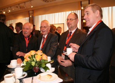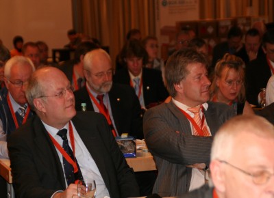 von 10: Hans-Günter Triebel glaubt nur seinen Unterlagen und liest zur Sicherheit noch einmal genau nach. Frank Huster vom DSLV und Dr. Stefan Ebner, Wirtschaftskammer Österreich, lauschen da lieber dem Geschehen.