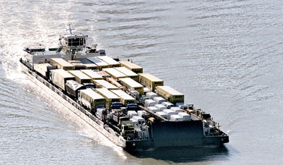 von 7: Schwimmende Landstraße: Per Donaukatamaran werden Sattelauflieger, landwirtschaftliche Fahrzeuge und Neuwagen zwischen Passau und Vidin verschifft.