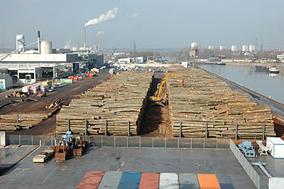 von 7: Der Hafen Aschaffenburg soll sich zum Zentrum der Holzindustrie entwickeln. Dort nahm kürzlich Europas größtes Massivholzwerk seinen Betrieb auf.