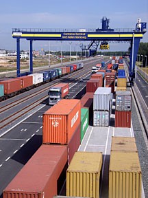 von 7: Die Bayernhafen Gruppe konnte im Jahr 2006 den Containerumschlag um 33 Prozent steigern. Davon entfielen 87 Prozent auf die Bahn.