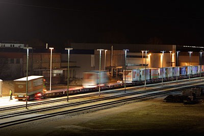 von 7: Die Rollende Landstraße in Regensburg. Hier fahren täglich Züge von und nach Graz. 2007 soll das Terminal für eine Verbindung nach Trento ausgebaut werden.