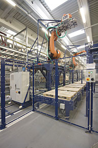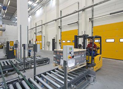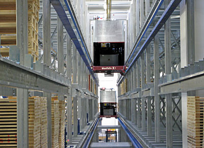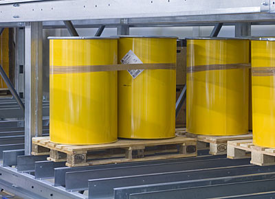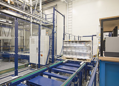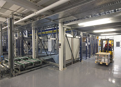 von 10: Westfalia hat zusammen mit dem Schweizer Logistikplaner Hanhart für das neue Klebstoffwerk der Skika AG in Düdingen ein neues Logistiksystem realisiert. Die Ingenieure haben ein Hochregallager mit ca. 500 Palettenplätzen gebaut - zwei Tunnel durch das Lager verbinden raumsparend Abfüll- und Versandbereich. Die Anlage ist auf Flexibilität angelegt. Impressionen in dieser Bildergalerie.