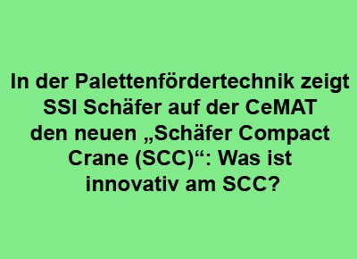 von 13: Der Schäfer Compact Crane (SCC) ist für ein Marktsegment für standardisierte Ladeeinheiten und Einsatzbereiche bis zirka 20 Meter Höhe sowie Lagermodernisierungsprojekte entwickelt worden. Ein optimiertes Baugruppenkonzept, kombiniert mit High-end-Antriebstechnik, bietet den Anwendern technische und monetäre Vorteile. Dabei ist der SCC bis zu 15 Prozent leichter als herkömmliche RBG. Und: Durch sein optimiertes Entwicklungs- und Produktionskonzept ist der Schäfer Compact Crane in der Anschaffung wirtschaftlicher gegenüber anderen RBG. Kompakt und leistungsoptimiert ist das SCC das ideale Regalbediengerät für Hochregalläger mit hohen Durchsätzen sowie für den Einsatz bei Lagermodernisierungen.
