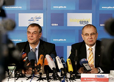 von 20: 14. Januar 2008. Der Konzern und die Gewerkschaft Deutscher Lokomotivführer einigen sich am Wochenende auf Lohnerhöhungen von elf Prozent. Trotz der Einigung zwischen der Bahn und der GDL gibt es aber weiter Unstimmigkeiten darüber, ob sich GDL sowie die übrigen Gewerkschaften Transnet und GDBA bei künftigen Tarifforderungen auf eine gemeinsame Position verständigen müssen. Einen Tag später reagiert die Bahn mit einer harten Ankündigung auf den Kompromiss: Sie kündigt Stellenabbau und Preiserhöhungen an.