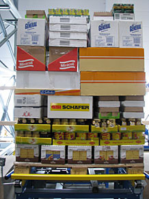 von 14: Durch die automatische, softwareoptimierte Palettierung sollen Kunden in die Lage versetzt werden, den LKW-Laderaum so gut wie möglich auszunutzen. (Foto: SSI Schäfer)