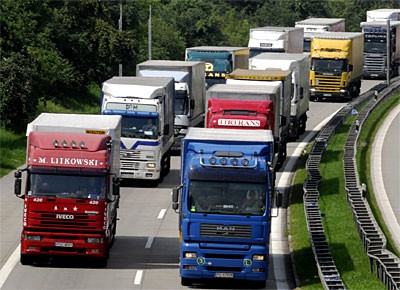 von 22: Mittwoch, 16. Januar 2008Der Güterverkehr in Deutschland legt weiter zu. Im vergangenen Jahr wurden mehr als 3,4 Milliarden Tonnen Güter per LKW durch Deutschland transportiert - das waren 5,5 Prozent mehr als im Vorjahr, meldete das Statistische Bundesamt heute in Wiesbaden auf Basis einer ersten Schätzung. Immer mehr Waren werden auf die Straße verladen: Der Straßengüterverkehr wies im Vergleich zur Eisenbahn und Schifffahrt die höchste Wachstumsrate auf. Der gesamte Gütertransport auf allen Verkehrswegen stieg 2007 um 4,8 Prozent auf 4,4 Milliarden Tonnen. (Foto: ddp)