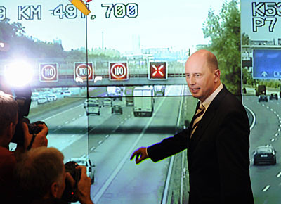 von 23: Freitag, 4. Juli 2008 Um Staus zu vermeiden, kann auf einem weiteren hessischen Autobahn-Abschnitt der Pannenstreifen zeitweise als zusätzliche Fahrspur genutzt werden. Die Technik dafür auf der A5 wurde am Freitag in Betrieb genommen. Damit ist die Freigabe des Seitenstreifens vom Frankfurter Kreuz bis zur Anschlussstelle Frankfurt-Niederrad möglich. Bundesverkehrsminister Wolfgang Tiefensee und Hessens Verkehrsstaatssekretär Klaus- Peter Güttler starteten die erweiterte Verkehrslenkungsanlage in Frankfurt gemeinsam. Damit gibt es in Hessen auf der A5 (Frankfurt-Kassel) und A3 (Franfurt-Köln) auf insgesamt 62 Kilometern befahrbare Pannenstreifen. Tiefensee sagte: "Wir brauchen einen Mix an Maßnahmen gegen Staus." (Foto: ddp)