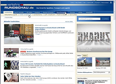 von 18: Donnerstag, 20. März 2008 Vorhang auf für die neue VerkehrsRundschau im Internet! Mehr Klarheit, mehr Service, mehr Nutzerfreundlichkeit: Die neue VerkehrsRundschau.de soll den Bedürfnissen ihrer Online-Nutzer nun noch besser Rechnung tragen. Bereits jetzt gilt die Seite als wichtigster Multimedia-Dienst in der Transport- und Logistikbranche. Seit ihrem Start vor einigen Jahren hat die Seite VerkehrsRundschau.de ihre Reichweite kontinuierlich ausgebaut. Mehr als 350.000 Seitenzugriffe und rund 100.000 Besucher monatlich kann der Dienst aktuell für sich verbuchen. Der zusätzlich zum Angebot gehörende kostenlose tägliche Newsletter zählt derzeit rund 8.300 Abonnenten.