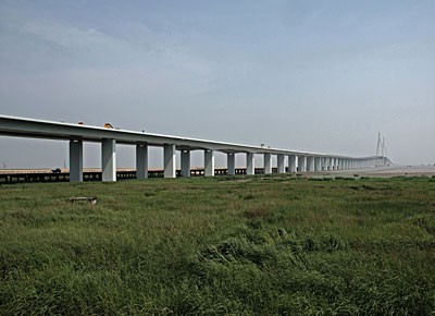 von 18: Freitag, 2. Mai 2008 China hat am Donnerstag die wahrscheinlich längste Meeresbrücke der Welt eröffnet. Die 36 Kilometer lange und 11,8 Milliarden Yuan (1,1 Milliarden Euro) teure Brücke führt über die Bucht von Hangzhou und soll die Verbindung zwischen den Hafenstädten Schanghai und Ningbo verbessern, wie die amtliche chinesische Nachrichtenagentur Xinhua berichtete. (Foto: Jürgen Zeller/CC-Lizenz) HIER finden Sie die Bilder des Tages aus dem Vormonat