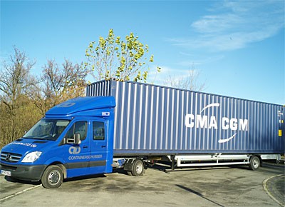 von 21: Mittwoch, 28. November 2007 Ein Spezialfahrzeug der CTD Container-Transport-Dienst (CTD) ist ab heute für Leercontainerumfuhren im Hamburger Hafen im Einsatz. Der Prototyp soll den Treibstoffverbrauch minimieren und den Fahrermangel in der Logistikbranche umgehen, teilt das Unternehmen mit. Die Eigenentwicklung des Logistikunternehmens basiert auf Grundlage eines Transporters vom Typ Mercedes „Sprinter“ mit passend konstruiertem Chassis. Eine Umfuhr im Nahverkehr spare etwa zwei Drittel des Kraftstoffs im Vergleich zum Transport mit einem normalen LKW.