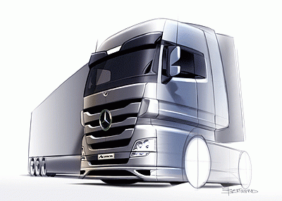 von 5: Die Design-Skizze gibt eine erste Idee vom komplett neuen Actros. Er soll etwa ab 2010 kommen.