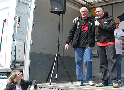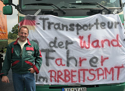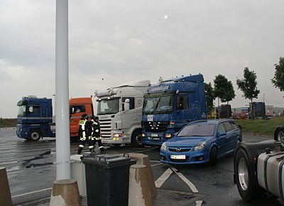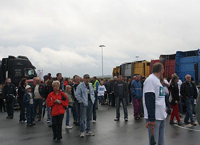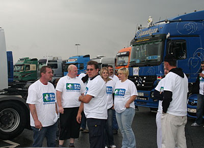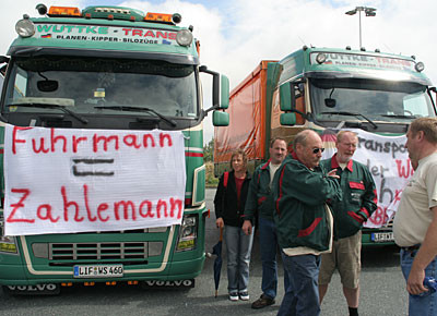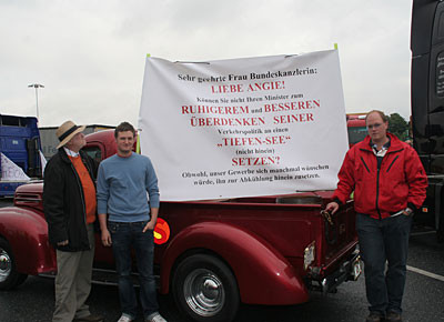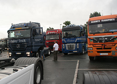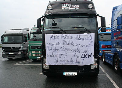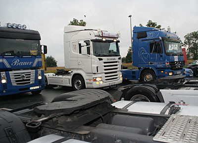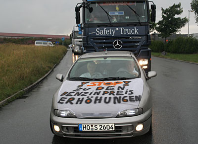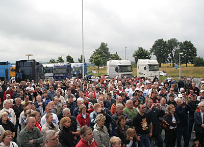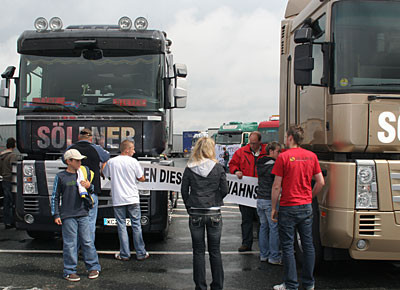 von 24: Rund 500 Lastwagenfahrer aus Bayern, Sachsen, Sachsen-Anhalt und Thüringen haben am Samstag, 19. Juli, gegen die hohen Dieselpreise demonstriert. Ziel ihrer Sternfahrt war eine Kundgebung an der Rastanlage Berg an der Autobahn A 9 in Oberfranken (Landkreis Hof). Zuvor waren rund 300 Lastwagen in Konvois über die Autobahnen zu dem Autohof gefahren. Impressionen von der Protestaktion - in dieser Bildergalerie. (Alle Fotos: Sonja Sydow)