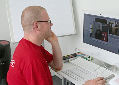 von 18: Höchste Konzentration am Schnitt-Computer: Für Cutter Rene beginnt jetzt die heiße Phase. Er lässt Bilder und Texte zu fertigen Sendungen werden. Anschließend werden die Beiträge per Computer auf einen Server geschoben und gelangen so auf die Internetseiten von LOGISTIK inside.