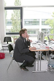 von 18: Im Raum ist es manchmal so still, dass nur das Klappern der Tastaturen zu hören ist. Was wird der heutige Tag wohl bringen?
