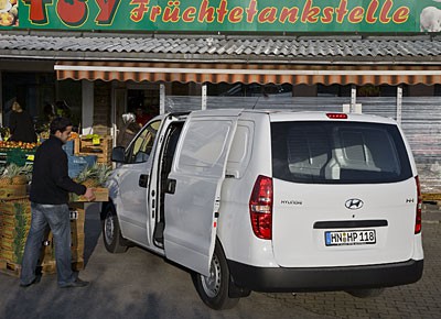 von 20: Beim ersten Augenschein mit dem neuen Hyundai H1 untermauerte der 3,2-Tonner die Ambitionen der koreanischen Marke. Hohe Karosseriequalität, wertiges Interieur, ESP Serie, Preis günstig - er könnte ernsthafter T5-Järger werden.