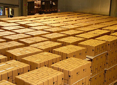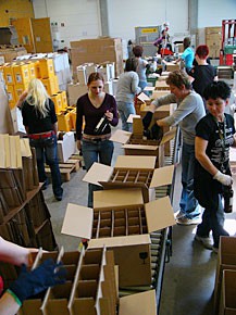 von 6: Rund 1.500 Weinkartons werden in einer Schicht gepackt und versandfertig gemacht. Insgesamt müssen für die verschiedenen Reader's Digest Weinaktionen jährlich eine gute Million Flaschen Wein an viele tausend Kunden auf die Reise geschickt werden.