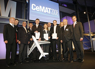von 6: Niedersachsens Ministerpräsident Christian Wulff hat im Rahmen der CeMAT-Eröffnung Deutschlands beste Logistikstudenten ausgezeichnet. Gruppenbild mit allen Gewinnern.