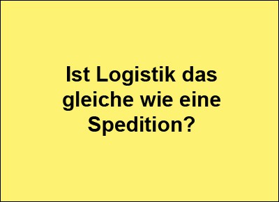 von 27: Nein. Logistik ist der Oberbegriff für eine Fülle von Tätigkeiten. Spedition meint hingegen in der Regel die Organisation und zum Teil auch die Durchführung vonTransporten.