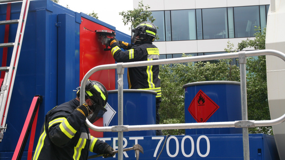 von 29: Personenrettung und Gefahrgutunfall kombiniert: die mobile LKW-Unfall- und Gefahrgut-Übungsanlage TRT 7000.