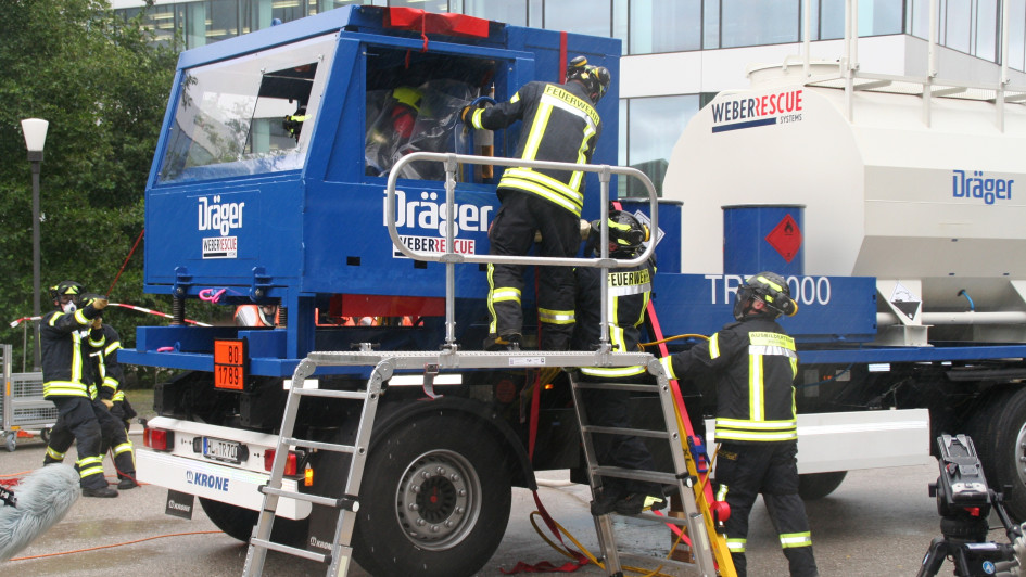Dräger und Weber rescue haben einen Übungs-LKW für Feuerwehren vorgestellt. Dieser vereint gleich mehrere Vorteile: Personenrettung aus dem LKW-Führerhaus und Gefahrgutszenario kann an einer Unfallsimulation geübt werden. Die Übung kann beliebig wiederholt werden - dank passender Ersatzteile. Nach einer Roadshow im Herbst 2011 durch deutsche und österreichische Feuerwehren will die Firma Weber rescue das Übungsfahrzeug inklusive Trainer an die Wehren für Tagespauschalen vermieten.