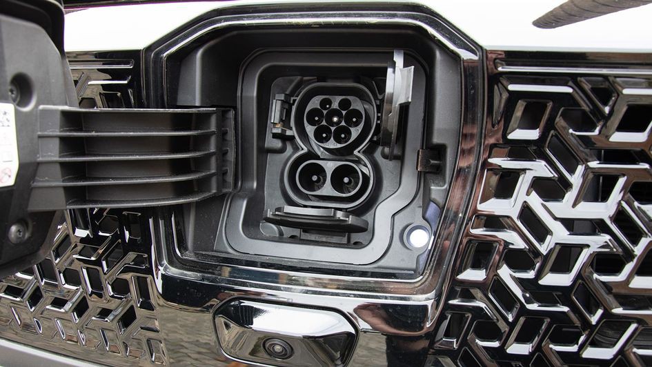 von 11: Ab Werk ist ein 11 kW AC-Charger verbaut. Auf Wunsch kann der Kunde diesen auf 22 kW erweitern, ebenfalls ist im Zubehörkatalog ein 80 kW DC-Lader mit CCS-Anschluss zu finden.