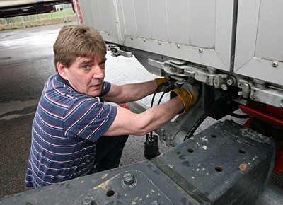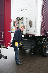 von 10: Fahrer Bernd Mache wechselt vom Tandemachser auf Dolly mit Eurosattel.