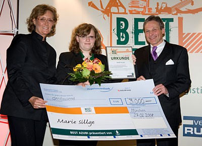 von 5: Feierliche Preisverleihung am 27. Februar 2008 in München: Die VerkehrsRundschau zeichnete im Münchner Maximilianeum die Gewinner des großen Wissenstestes "Best Azubi 2007" aus. Dotiert war der Wettbewerb, den die VerkehrsRundschau gemeinsam mit dem Versicherungsmakler Schunck ausgetragen hatte, mit insgesamt 10.000 Euro Preisgeld.