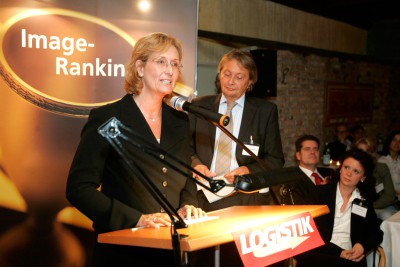 von 36: Die Preise wurden von Anita Würmser, Chefredakteurin Logistik inside und VerkehrsRundschau, gemeinsam mit Klaus-Peter Schöppner überreicht.