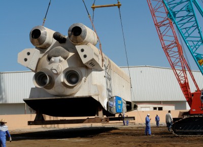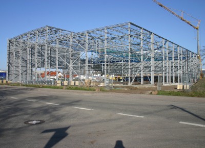 von 11: Die eigens für Buran gebaute neue Museumshalle wird voraussichtlich erst im Sommer 2008 fertig gestellt. Bis dahin wird das Raumschiff auf dem Gelände des Technik Museums warten müssen. Insgesamt kostete das Projekt das Technik Museum Speyer 10 Millionen Euro.