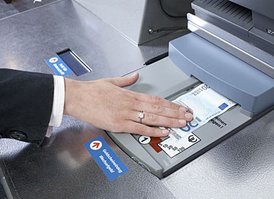 von 13: Die SB-Kasse akzeptiert Banknoten in allen Stückelungen.