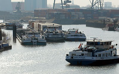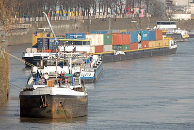 von 18: Erst am Abend des 30. März wurde das 20 Kilometer lange Rheinstück wieder für die Binnenschifffahrt geöffnet. Rund 500 Kapitäne warteten dort auf die Weiterfahrt. (Foto: ddp)