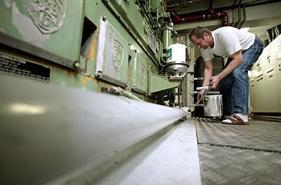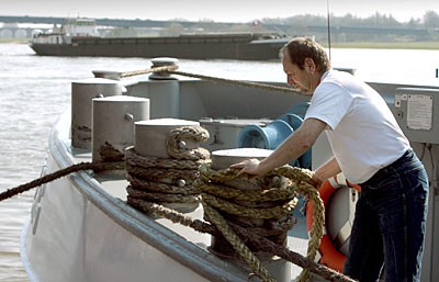 von 18: Zwangspause: Ein Schiffsführer belegt hier auf dem Rhein auf der Höhe von Duisburg einen Poller mit einem Seil. (Foto: ddp)