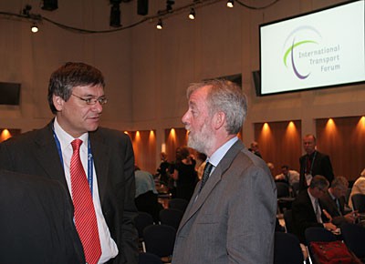 von 29: Verkehrsstaatssekretär Matthias von Randow im Gespräch mit dem Generalsekretär des Weltverkehrsforums (ITF) Jack Short (Bild: Bollig)