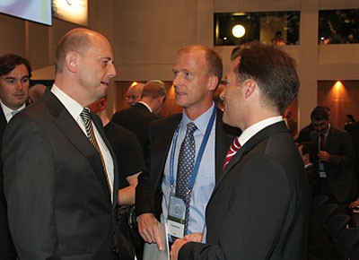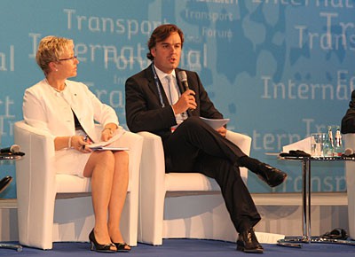 von 29: Johannes Ludewig (r.), Exekutivdirektor der Gemeinschaft der Europäischen Bahnen und Infrastrukturgesellschaften (CER) nutzte das Weltverkehrsforum um für den Verkehrsträger Bahn zu werben (Bild: Bollig)