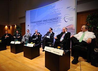 von 29: Eine Diskussionrunde analysierte die Einflussmöglichkeiten der Politik auf die Transportwirtschaft (Bild: ITF)