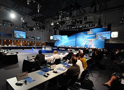 von 29: Die Herausforderungen des globalen Klimawandels für Verkehr und Energie bestimmten das erste Weltverkehrsforum (ITF) in Leipzig. An drei Tagen berieten Verkehrsminister, Wirtschaftsvertreter und Wissenschaftler aus mehr als 51 Staaten Strategien zur Verringerung der Schadstoff-Emissionen (Bild: Bollig)