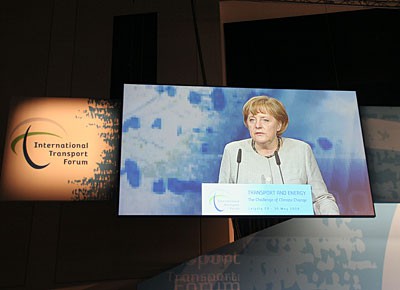 von 29: Gastrednerin auf dem ersten Weltverkehrsforum war Bundeskanzlerin Angela Merkel (Bild: Bollig)