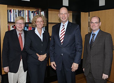 von 12: Wolfgang Tiefensee (2. v.r.) empfing die VR-Redakteure Jörg Kürschner, Anita Würmser und Sebastian Bollig (v.l.) im Bundesverkehrsministerium.