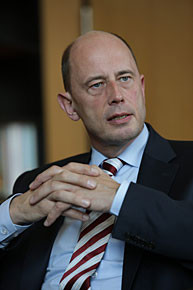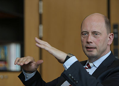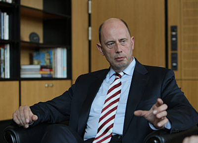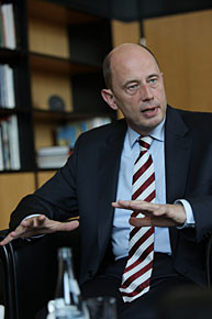 von 12: Höhere LKW-Maut, explodierende Dieselpreise: Bundesverkehrsminister Wolfgang Tiefensee warnt das Transportgewerbe vor anhaltend steigenden Preisen und stand im Interview der VerkehrsRundschau Rede und Antwort. Das Gespräch kann in der VerkehrsRundschau 28 vom 11. Juli 2008 nachgelesen werden. HIER können Sie ein Abo bestellen. (Alle Fotos: Frank Ossenbrink )