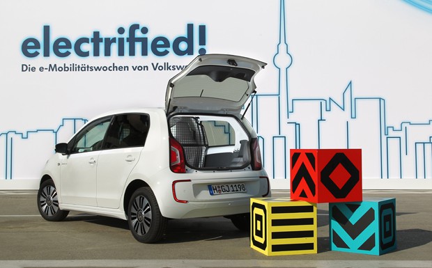 Mehr Wahlfreiheit gewährt VW beim Antrieb. Der Transporter-Zwerg ist wahlweise mit Elektro-, Benzin- oder Erdgas-Antrieb zu haben. Im Falle der elektrischen Lösung kommt ein 60 kW starker E-Motor mit 210 Newtonmetern Drehmoment zum Einsatz, der den Up! nahezu lautlos auf bis zu 130 km/h beschleunigen soll. Die Reichweite gibt der Hersteller mit maximal 160 Kilometer an. Die Schnittstelle zum Aufladen der Batterie verbirgt sich auch im E-Load Up! hinter dem „Tankdeckel“. Dabei kommt optional das von Volkswagen und weiteren Herstellern standardisierte Ladesystem CCS (Combined Charging System) zum Einsatz. Es unterstützt Gleich- und Wechselstromladung gleichermaßen, so dass an den meisten Ladestationen unabhängig von Stromquelle und angebotener Ladegeschwindigkeit die Fahrzeugbatterie geladen werden kann. Bereits nach 30 Minuten soll der E-Load Up! so bis zu 80 Prozent seiner Speicherkapazität wieder erlangt haben. Der 3,54 Meter kurze Elektro-Flitzer soll 285 Kilogramm Nutzlast bieten.