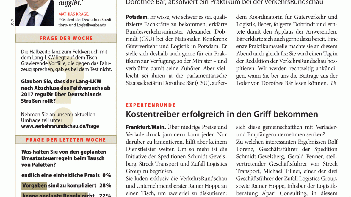 Die parlamentarische Staatssekretärin beim Bundesverkehrsminister, Dorothee Bär, absolviert ein Praktikum bei der VerkehrsRundschau