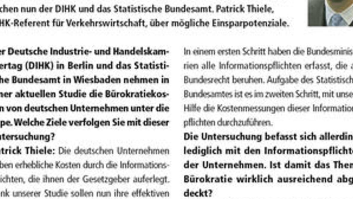 Wie hoch ist der bürokratische Aufwand für deutsche Firmen? Das untersuchen nun der DIHK und das Statistische Bundesamt. Patrick Thiele, DIHK-Referent für Verkehrswirtschaft, über mögliche Einsparp...