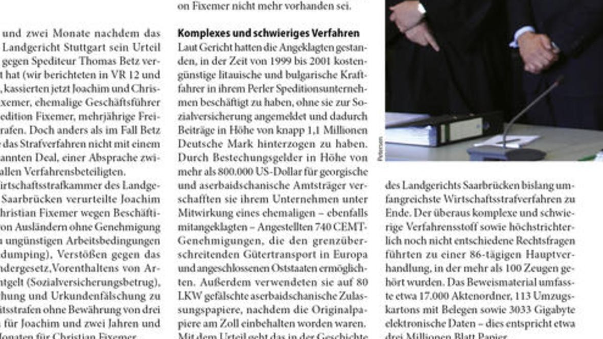 Disposition Das Urteil ist gefällt: Freiheitsstrafen für Joachim und Christian Fixemer. Ein Hauptvorwurf: Die zentrale Disposition osteuropäischer Fahrer, ohne in Deutschland Sozialabgaben zu z...
