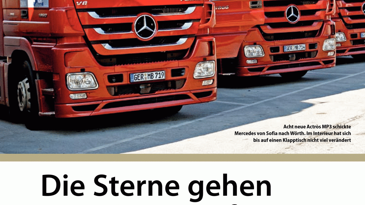 Acht neue Actros MP3 schickte Mercedes von Sofia nach Wörth. Im Interieur hat sich bis auf einen Klapptisch nicht viel verändert im Osten auf Auf einer Tour durch Zentral- und Osteuropa geht der neu...