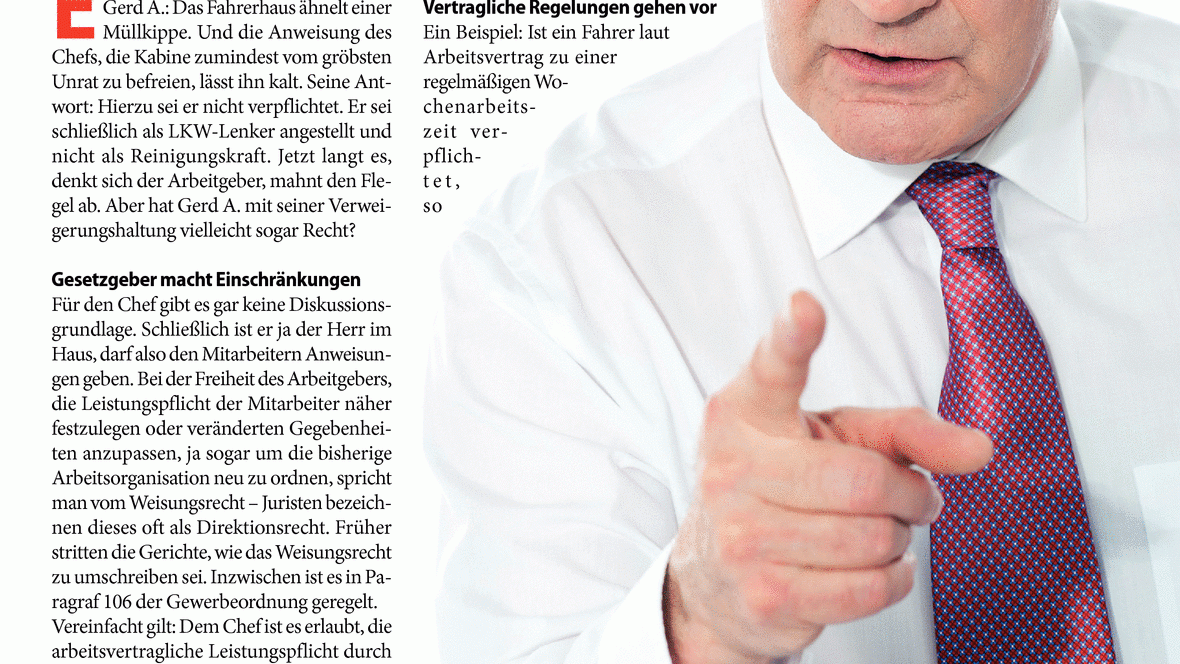 Herr im Haus Überstunden, Firmenkleidung, Alkoholverbot: Als Chef ist man rechtlich befugt, seinen Mitarbeitern Anweisungen zu geben. Das des Vorgesetzten hat aber auch Grenzen. Es ist immer dassel...