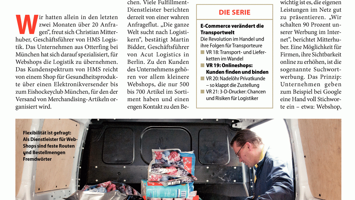 Die jungen Wilden Spediteure, die mit Online-Shops zusammenarbeiten, werden gesucht. Allerdings: Die Anforderungen an die Logistiker unterscheiden sich im Vergleich zum herkömmlichen Transportgesch...
