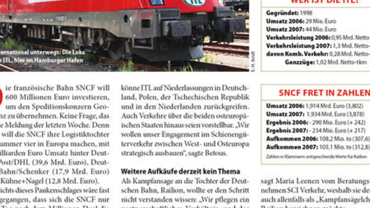 Deutschland Mit der mehrheitlichen Übernahme der Privatbahn ITL steigt auch die Güterbahn-tochter der französischen Staatsbahn SNCF in den deutschen Schienengüter-verkehrsmarkt ein. Eine Kampfansage ...