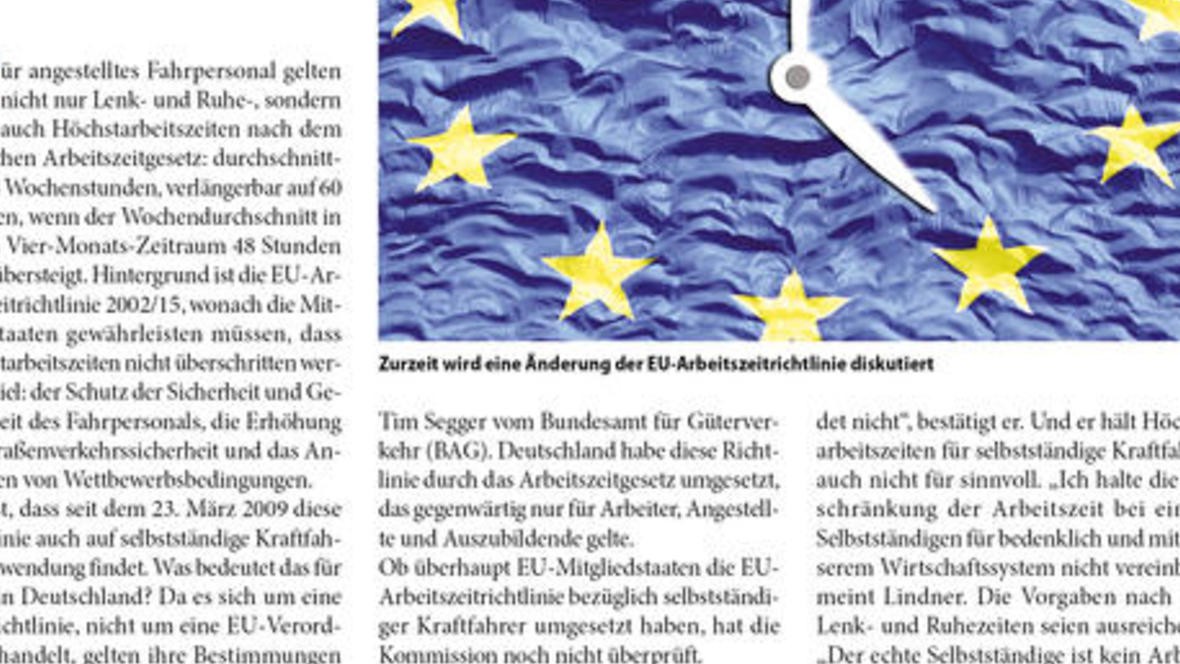 Laut EU-Arbeitszeitrichtlinie sollen Höchstarbeitszeiten seit dem 23. März auch für selbstständige Kraftfahrer gelten. Warum sie sich in Deutschland derzeit dennoch nicht an diese Arbeitszeiten halt...