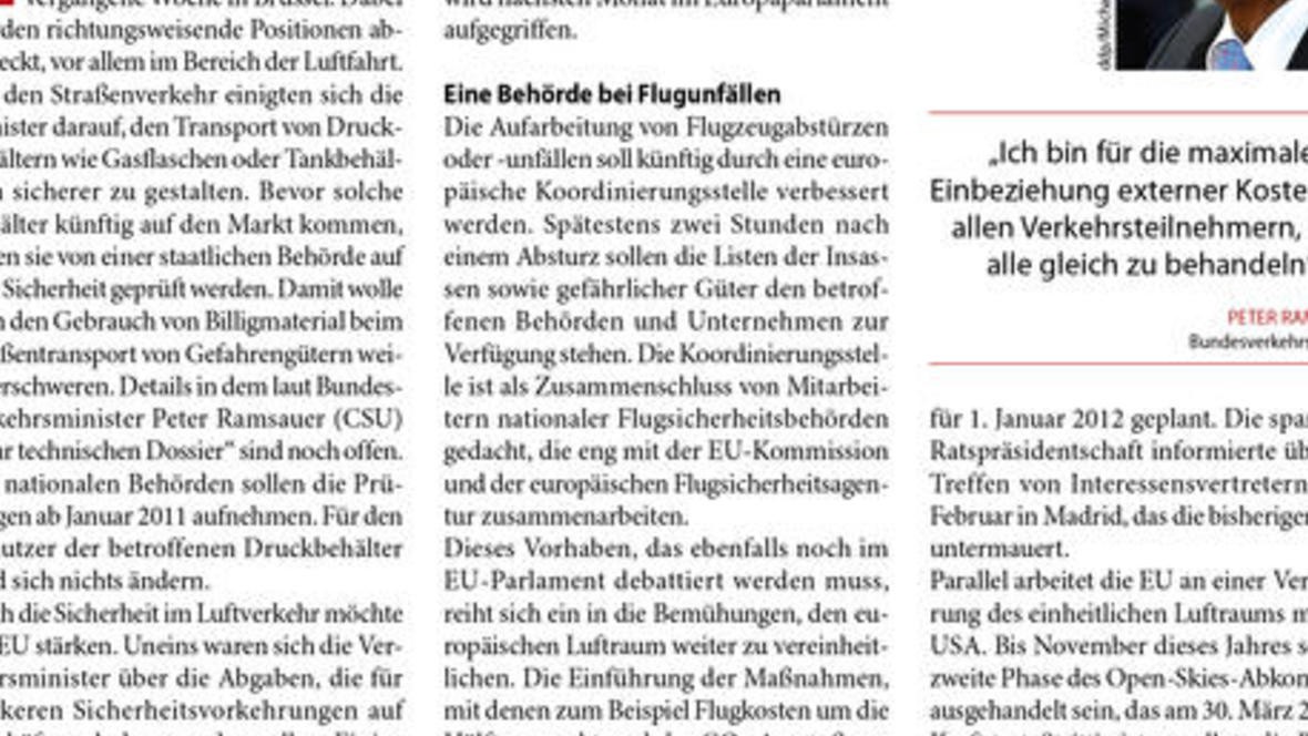 EU-Verkehrsminister fordern stärkere Kontrollen von Druckbehältern vor der Markteinführung. Auch die Sicherheit im Flugverkehr stand bei dem Treffen in Brüssel auf der Tagesordnung. Ein Strategie-, ...