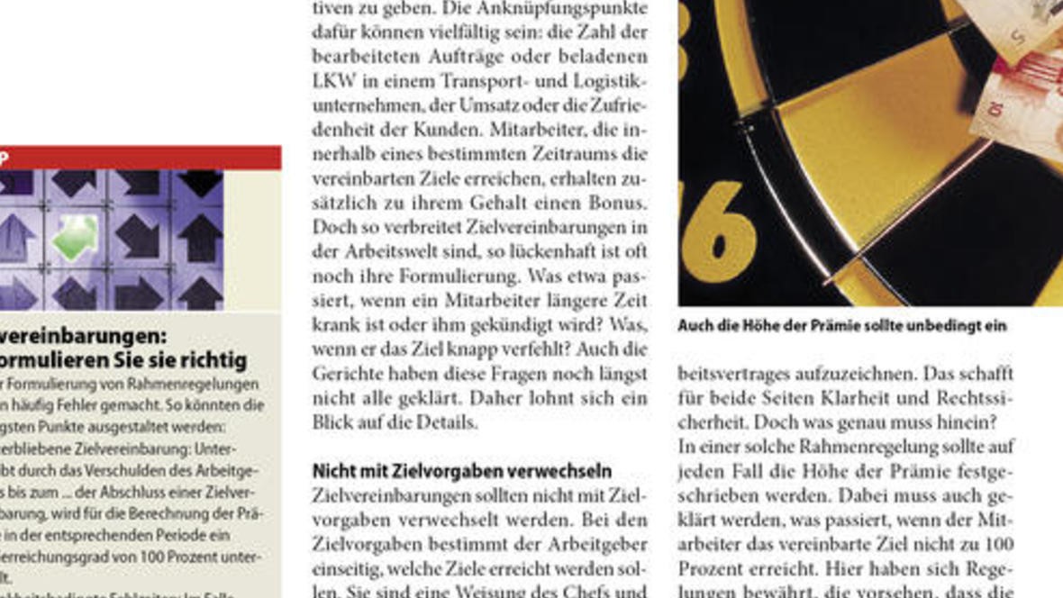 zum Ziel Zielvereinbarungen spielen in der Arbeitswelt eine immer größere Rolle. Ihre Formulierung wird jedoch oft zu einer kniffligen juristischen Angelegenheit. Wer vom Ziel nicht weiß, kann den W...